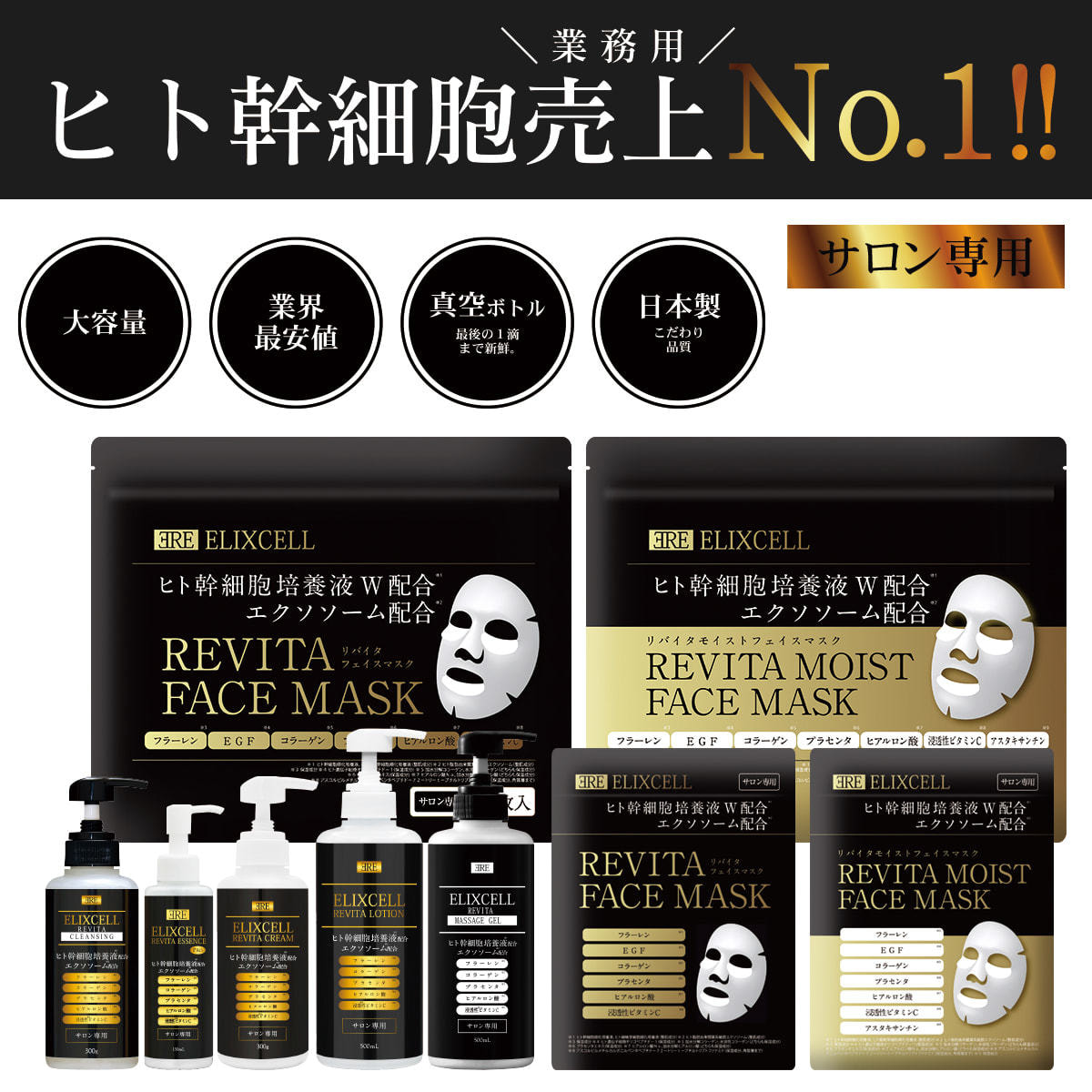 低価格&大容量のヒト幹細胞配合マスクで、業務用・ホームケア用どちらもでもご活用できます。